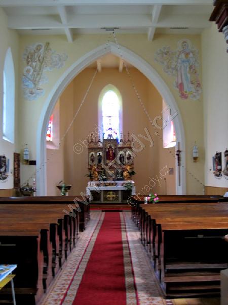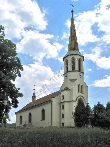 Pohled na kostel ze hřbitova, obklopující kostel.