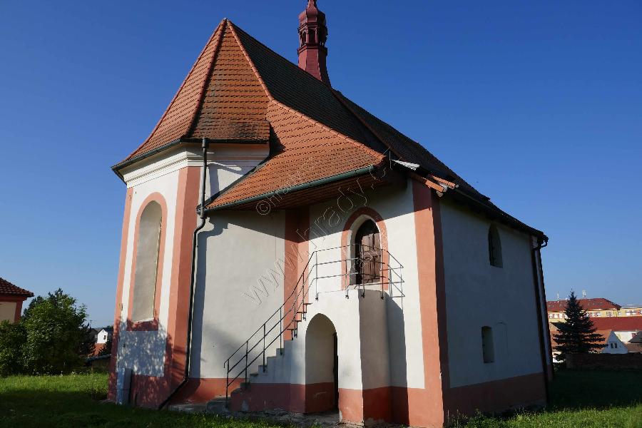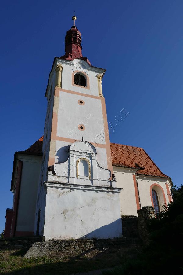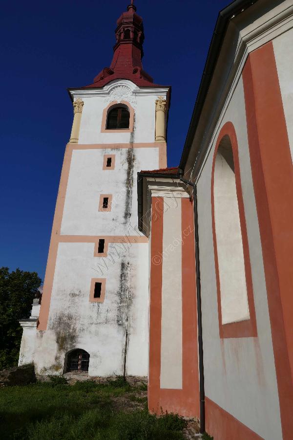 Kostel od SV. Napravo je sakristie a v patře nad ní oratoř.