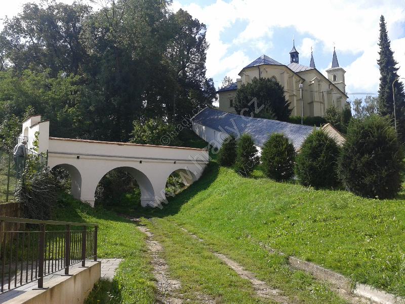 Most pro faráře, kryté schodiště Pavláčka a kostel sv.Michala