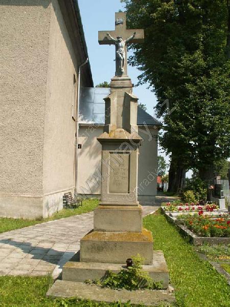 Celkový pohled na kříž před kostelem