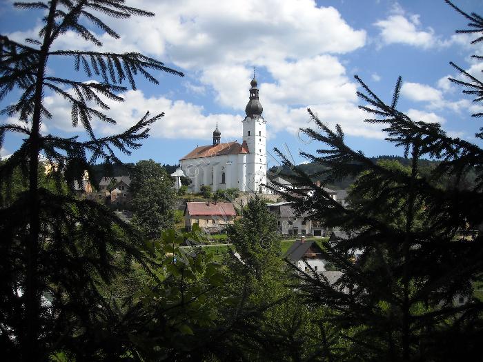 pohled na kostel a faru od zámku