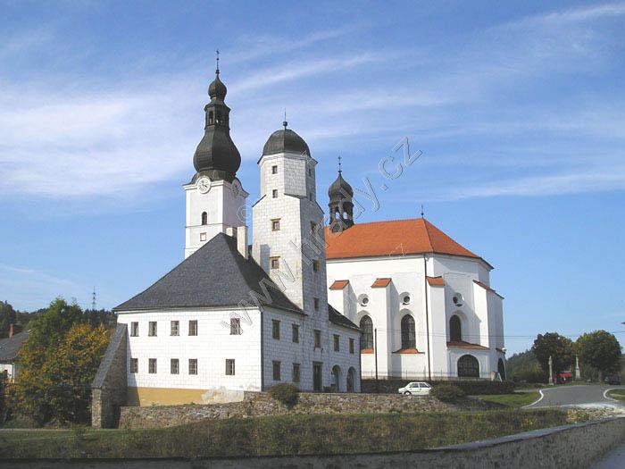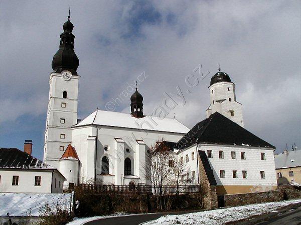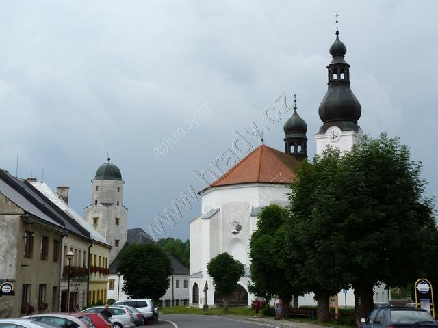 kostel s budovou fojtství od zámku