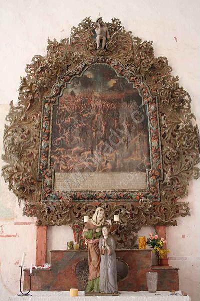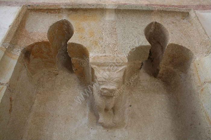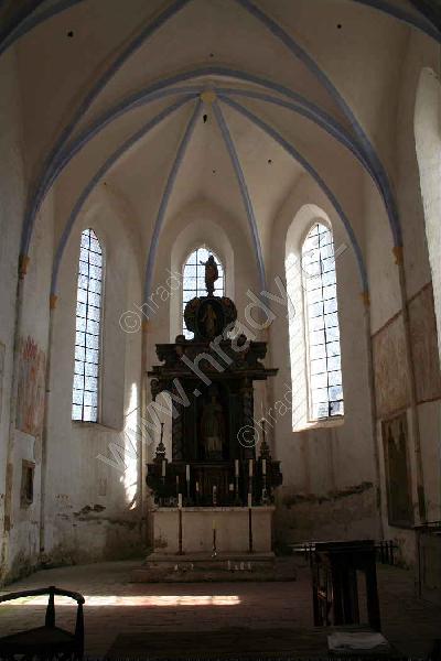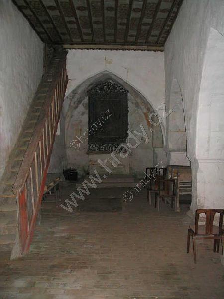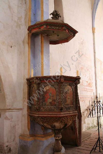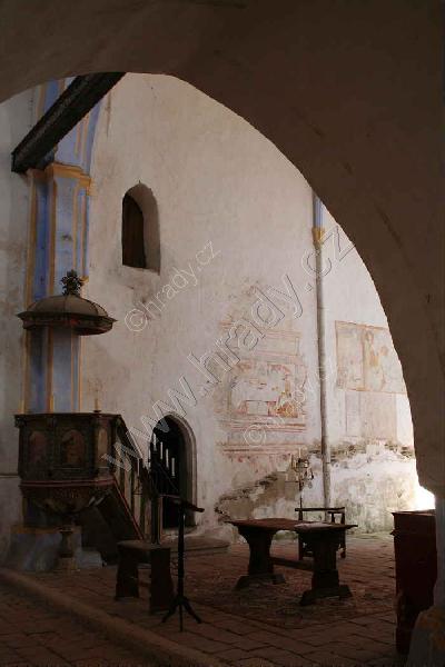 do presbytáře. Vpravo od kazatelny portálek sakristie.