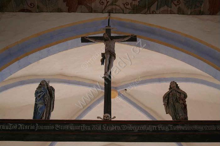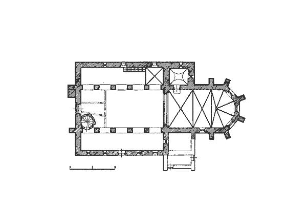 s částí jediného zachovaného klenebního pole v lodích kostela.