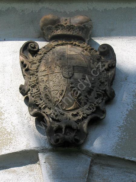 Erb nad hlavním vchodem na hřbitov a ke kostelu