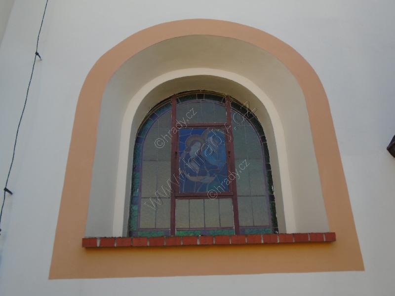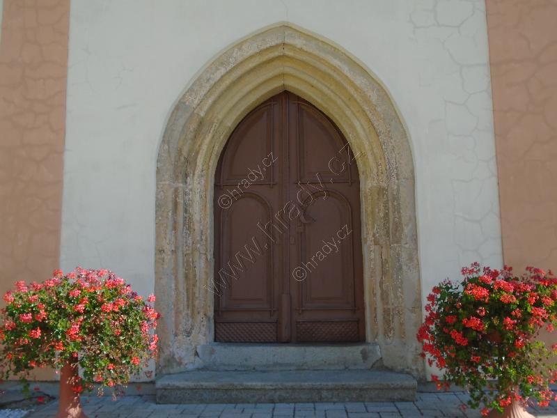 dřevořezba na severní straně, vpravo boční vchod do presbytáře