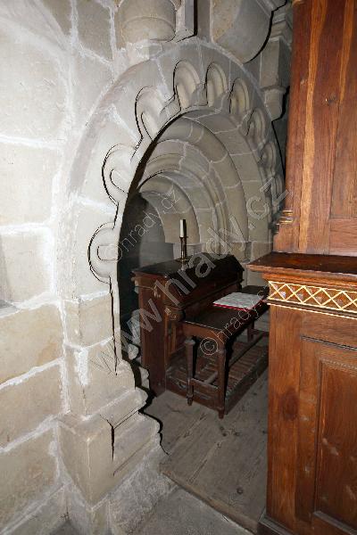 kresba zachycuje tribunu jako otevřenou vzdušnou prostoru, dnes po zástavbě varhan naopak působí velmi stísněným dojmem