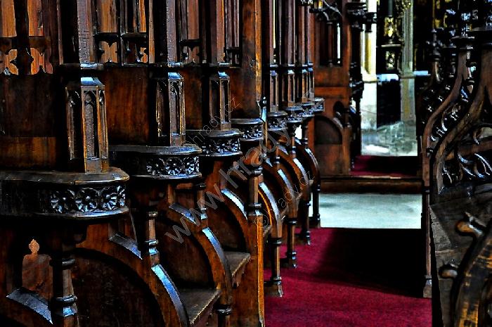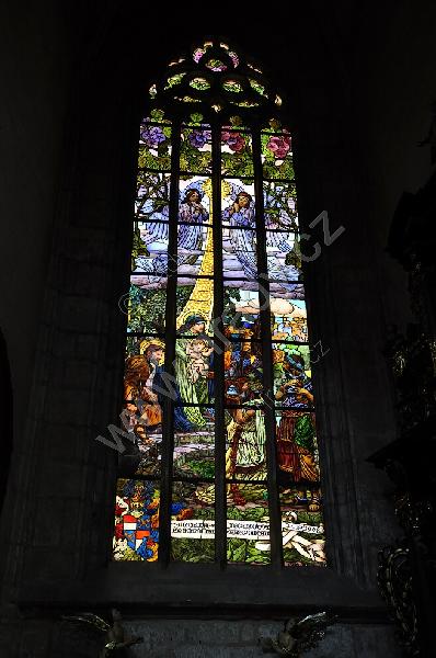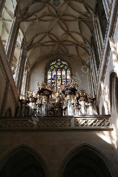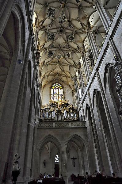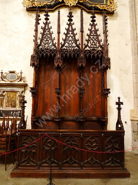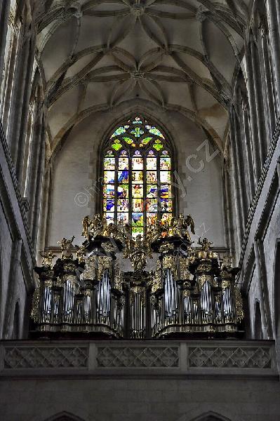 Velká novogotická varhanní kruchta na západním konci hlavní lodi s barokními varhanami