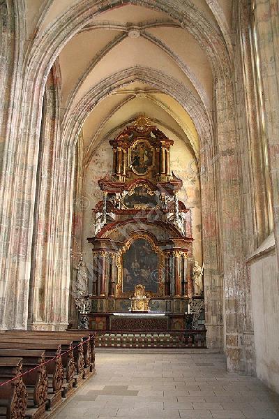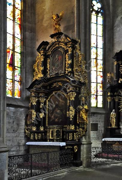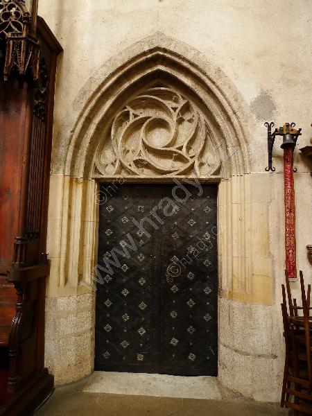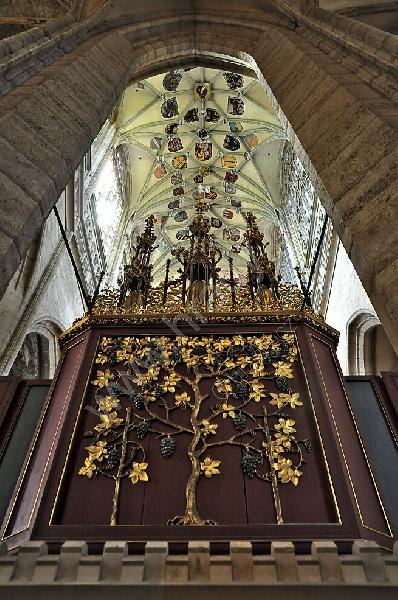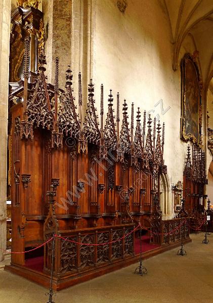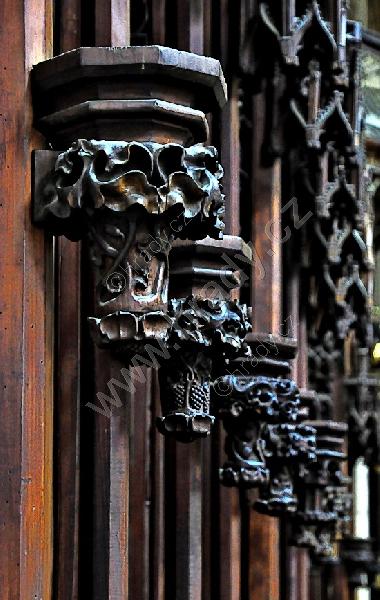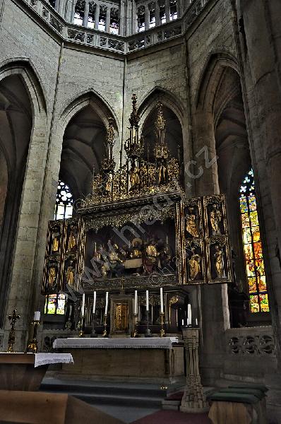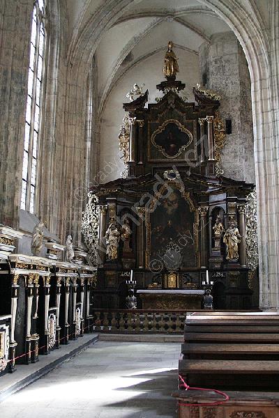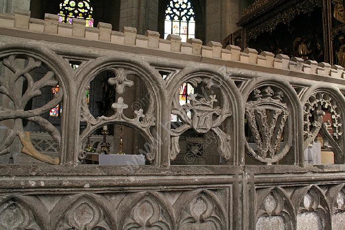 Zábradlí u hlavního oltáře s monogramy králů Vladislava II. (W) a Ludvíka (L) Jagellonských