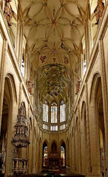 Zadní stěna hlavního oltáře, klenba vysokého chóru a hlavní lodi