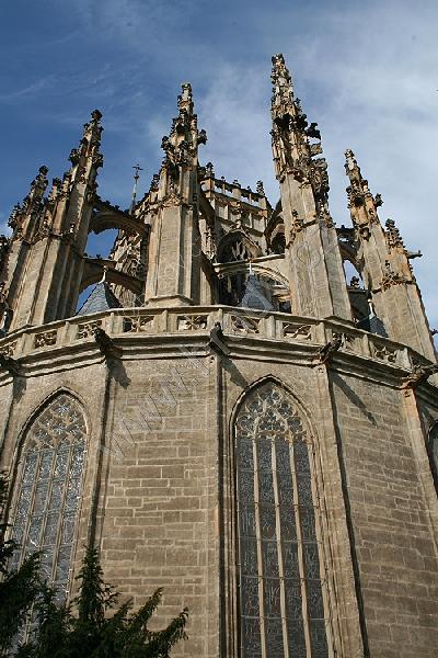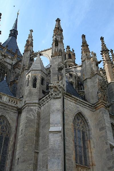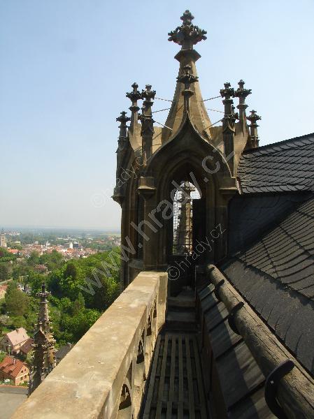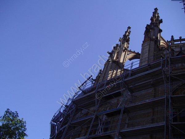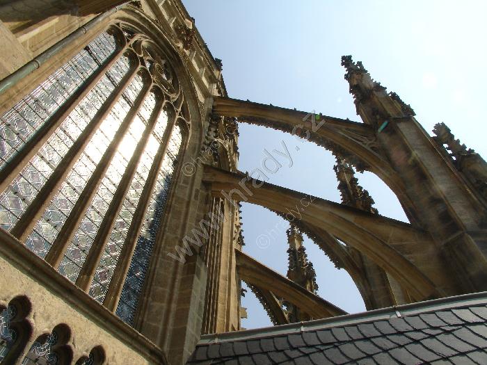 Východní konec severní vnější boční lodi, schodišťová vížka a opěrný systém