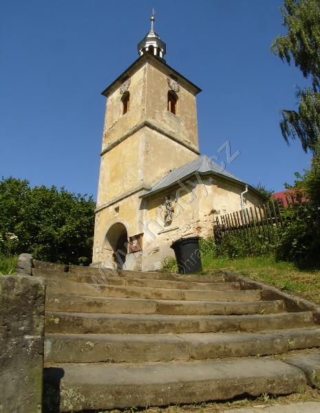 Barokní zvonice z roku 1860 v ohradní zdi hřbitova
