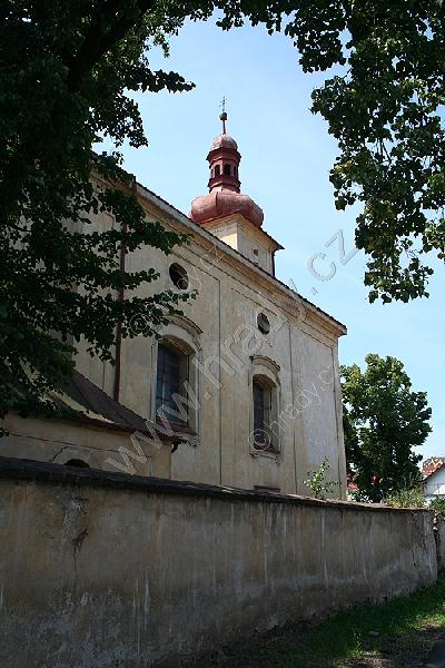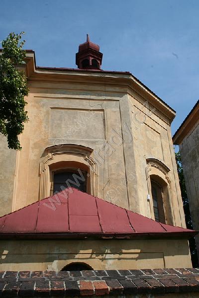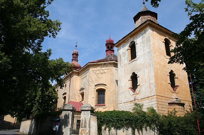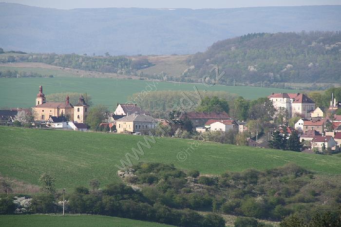 Křemýž s dominantami kostela, zvonice a zámku ze silnice Hostomice - Úpoř