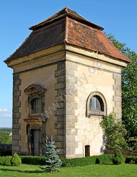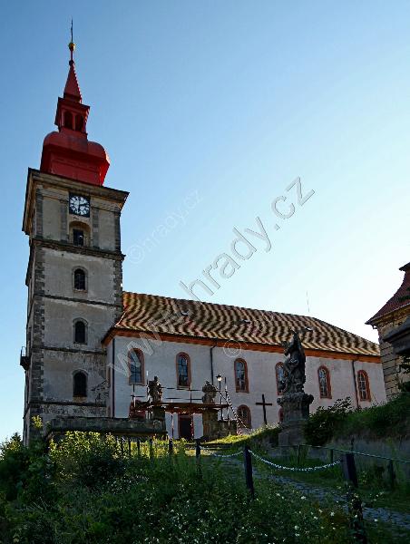 kostel ještě se samostatnou zvonicí před požárem r. 1806