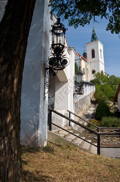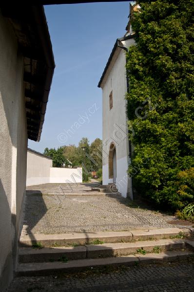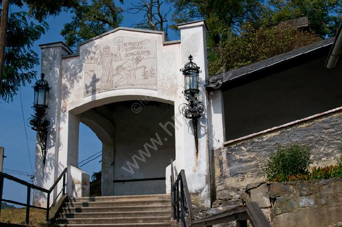 dvoustranný vstup do kryté chodby vedoucí ke kostelu