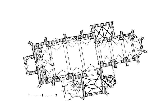 pohled od jihovýchodu na gotický polygonální závěr, mariánskou kapli a novogotickou věž