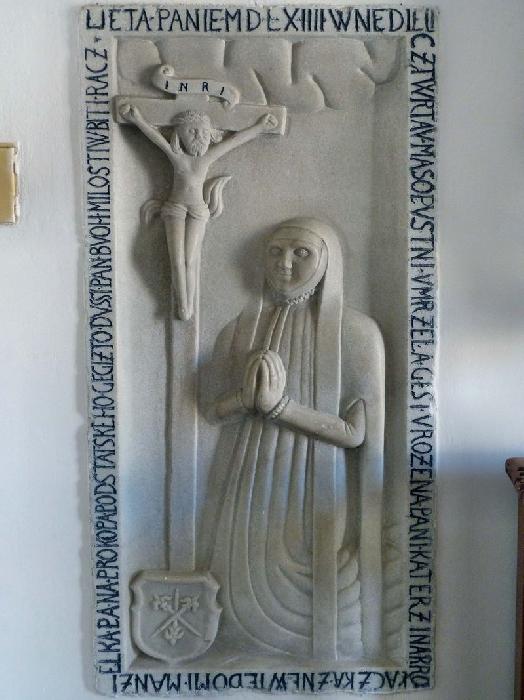 Náhrobník Kateřiny Kropáčové z Nevědomí, provdané Podstatské z Prusínovic (†1564) v podvěží