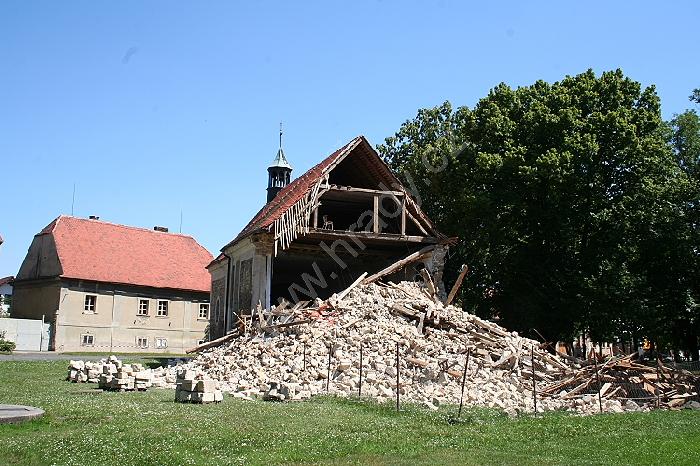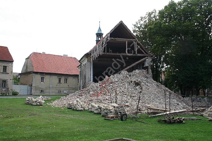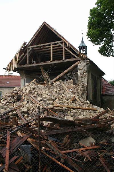 Ze sutin jsou vybírány kameny, snad použitelné pro obnovu zřícené části.