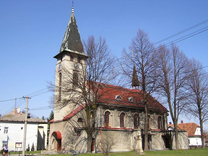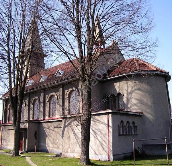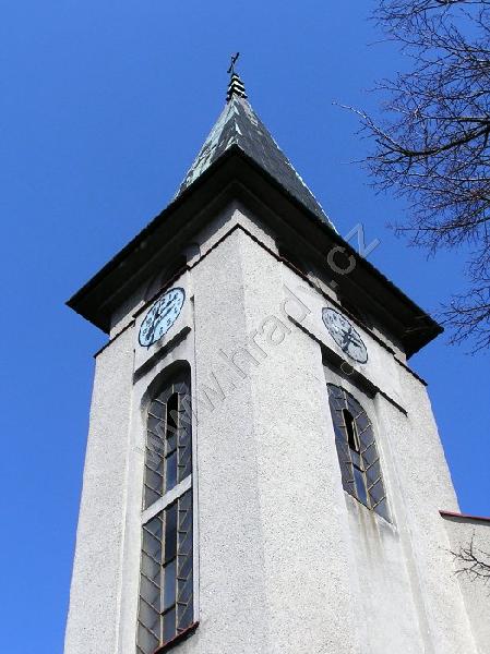 Kostel sv. Václava od silnice na Pržno a Frýdlant