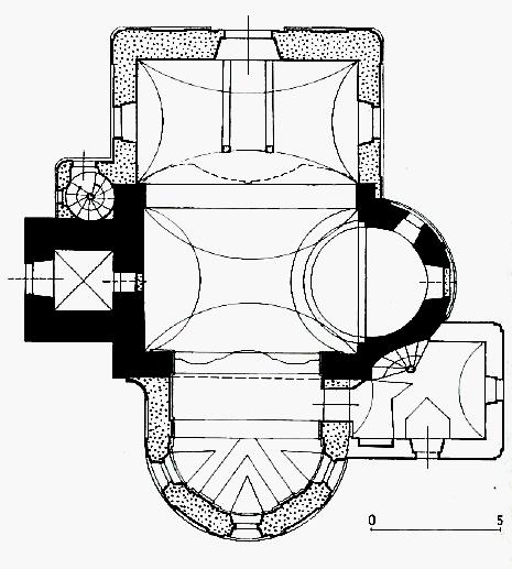 černě románské zdivo, tečkovaně barokní, neznačeně mladší