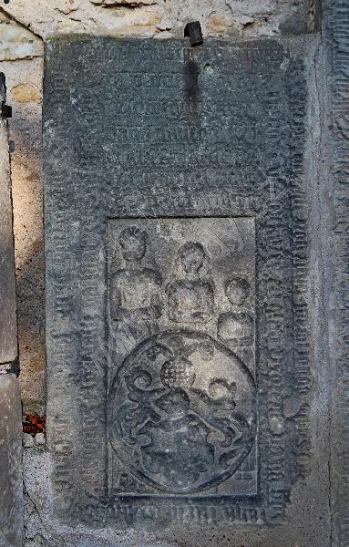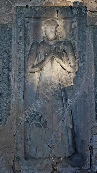 náhrobní kámen ve zdi kostela
