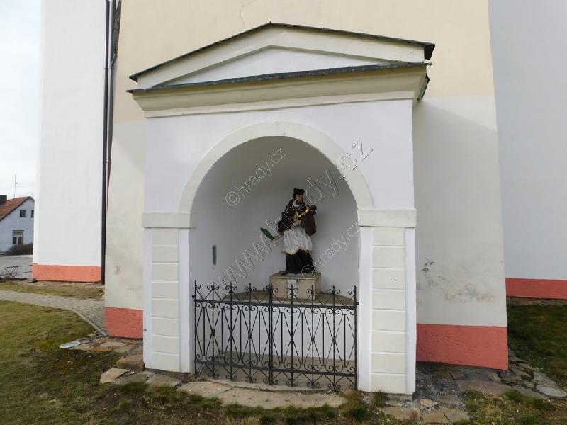socha svatého Jana Nepomuckého v kapličce na jižní straně kostela