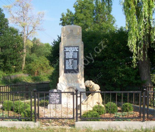 Pomník obětem válek před kostelem.