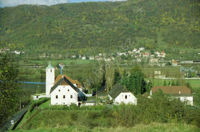 Kostel a sousední statek od jihu