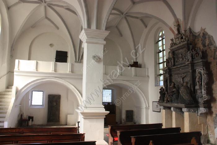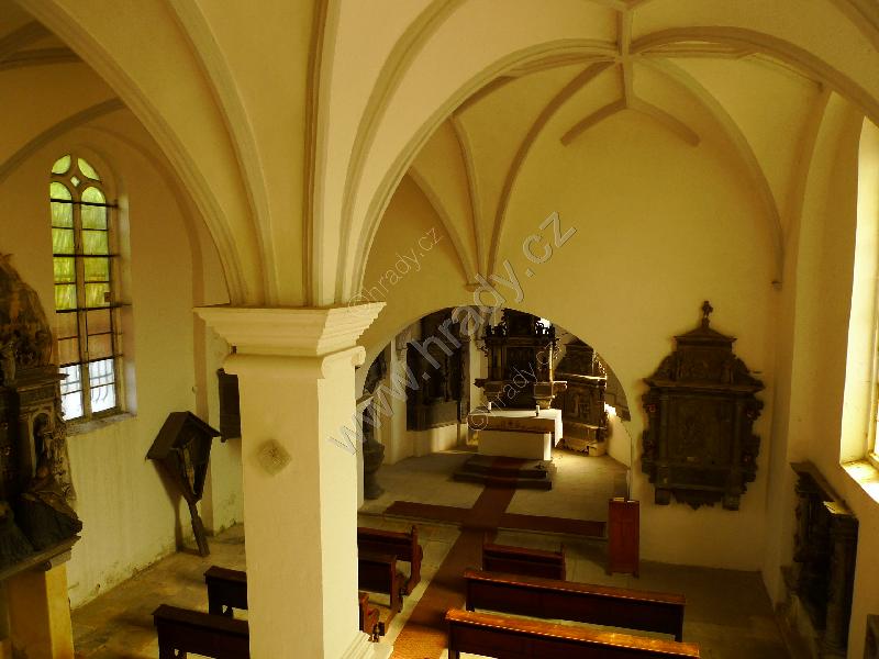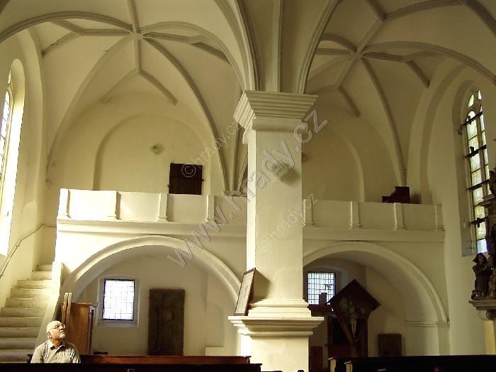 Pohled z kruchty do dvojlodí a presbytáře