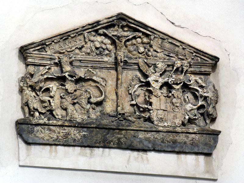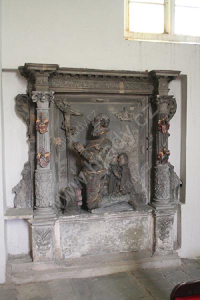 renesanční náhrobek na vnější zdi kostela