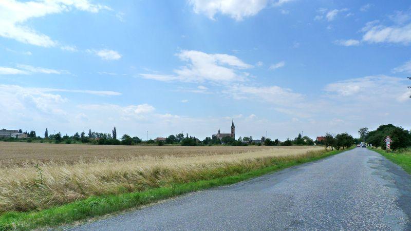 Kostel ze silnice Veleliby - Nymburk