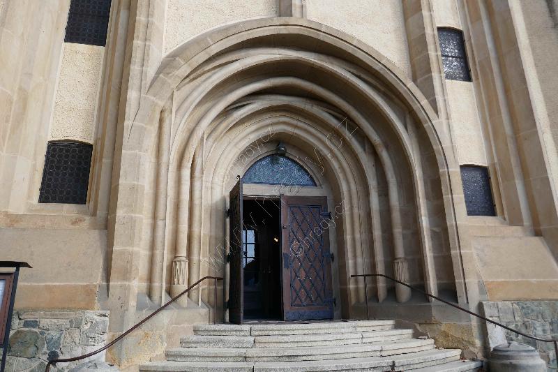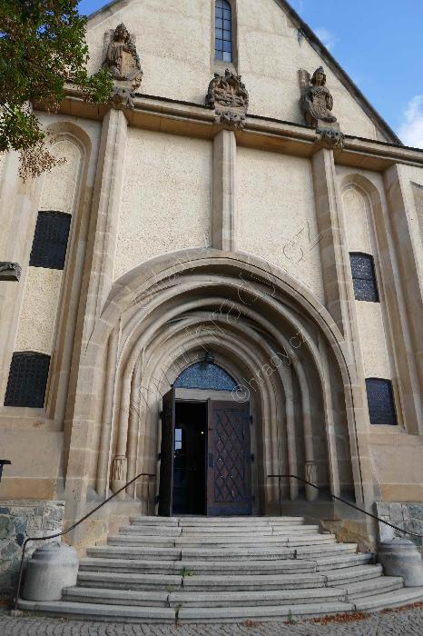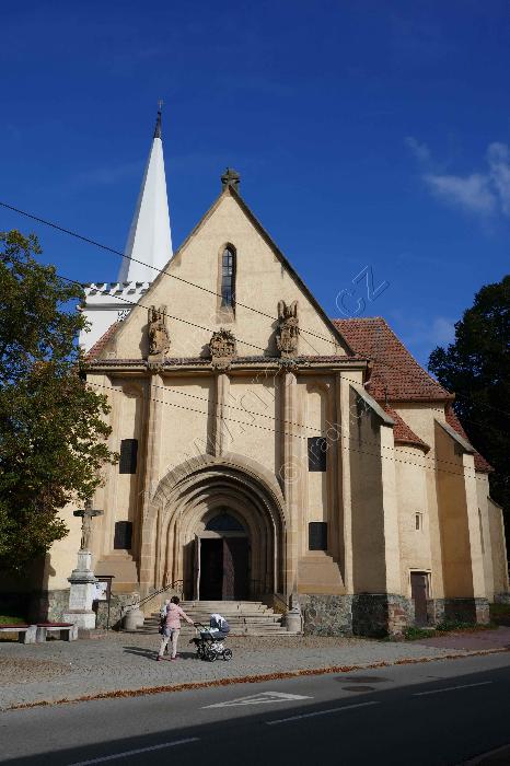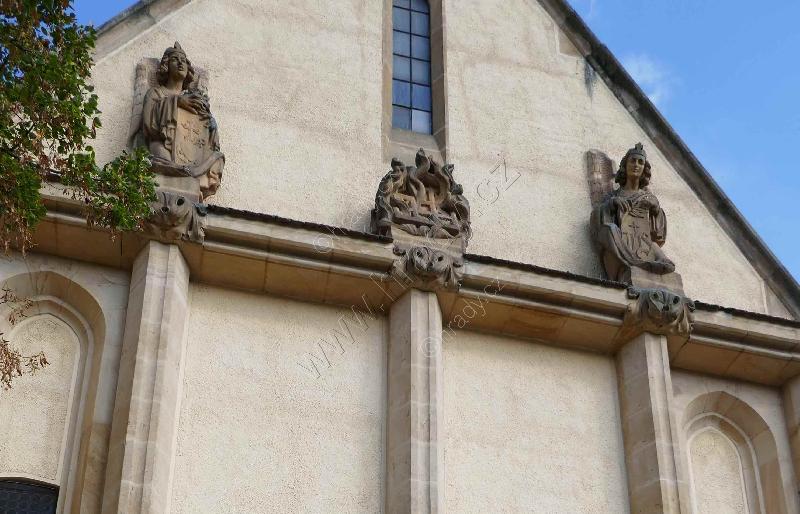 Na římse jsou dvě sochy andělů. Mezi nimi je hořící rožeň, symbol upálení svatého Vavřince.