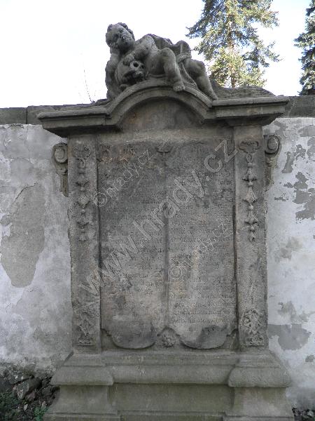 Barokní náhrobek z druhé poloviny 18.století vsazený v kostelní zdi