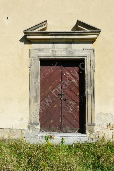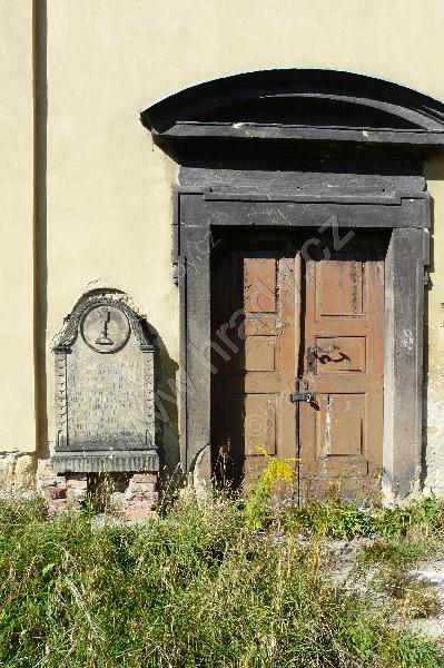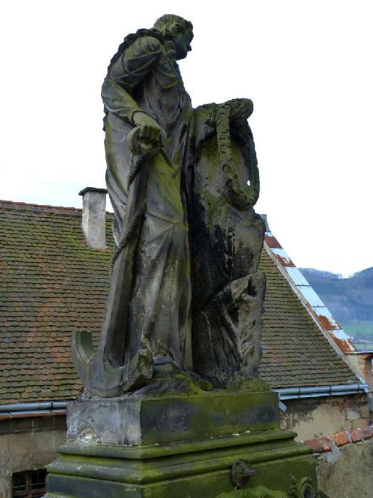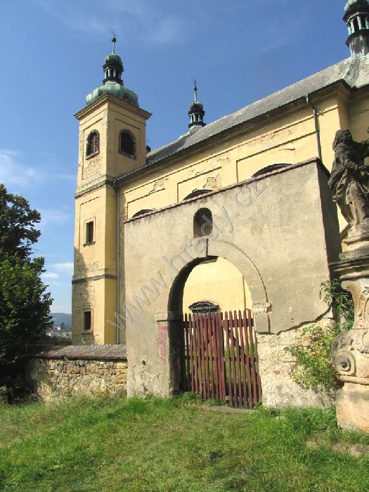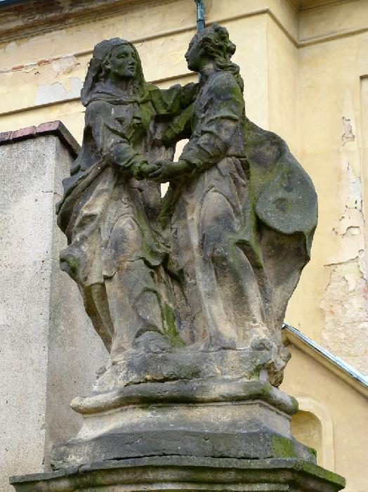 Kostel sv. Vavřince v děčínské čtvrti Nebočady, sousoší u vchodu do kostela