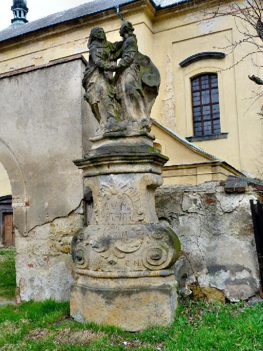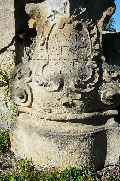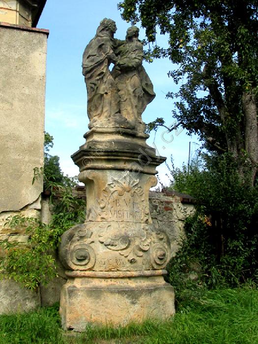 Sokl sousoší Navštívení Panny Marie s nápisem a datem 1757 v kartuši