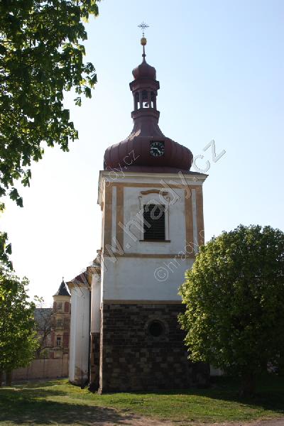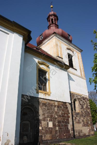 Kostel od jihu, přes plochu někdejšího hospodářského dvora