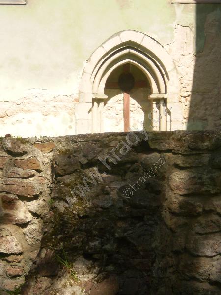 Zazděný gotický portál v kostelní zdi