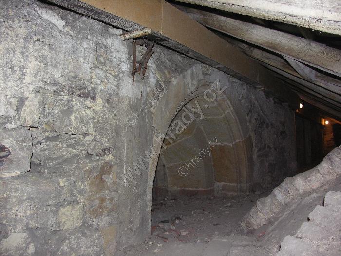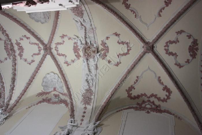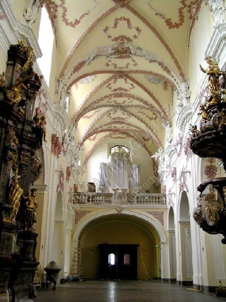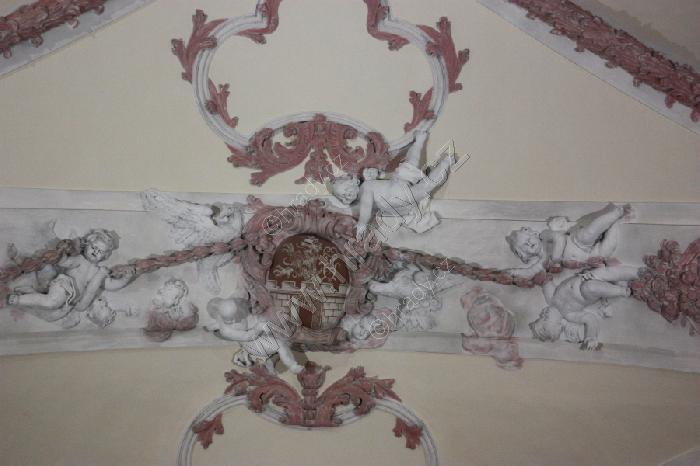Městský znak na klenebním pasu mezi původní lodí a její západní přístavbou