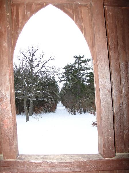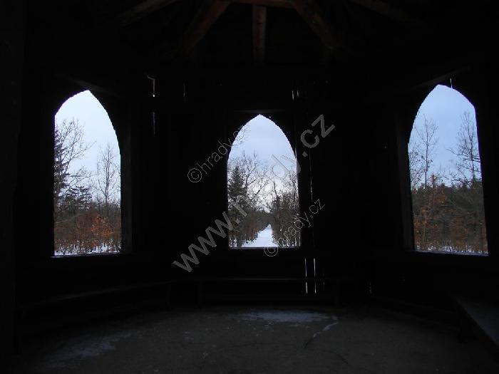 Původní altán byl zbořen silnějším větrem před rokem 1989. Byl obložen kůrou z místních dubů a bříz, podlaha byla vyložena oblázky.