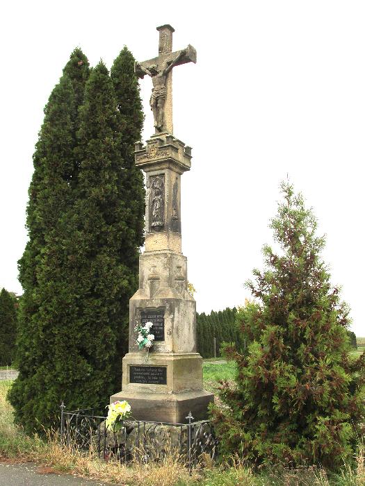 Kříž u silnice mezi Mezicemi a Náklem v okrese Olomouc.