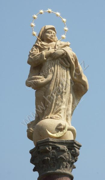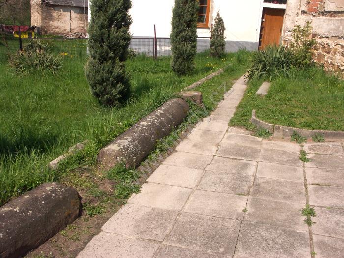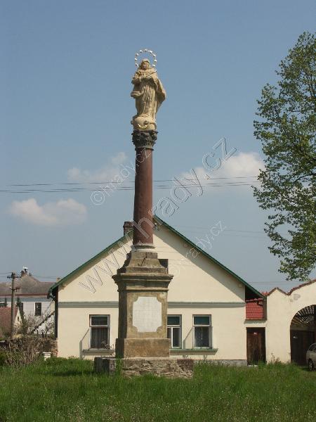 z obdobného sloupu z červeného pískovce je vytvořen dřík mariánského sloupu na návsi