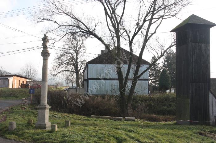 Mariánský sloup, okály a věž hasičské zbrojnice od západu