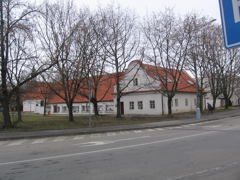 linie morového špitálu od jihu od kaple přes střední křídlo až po severní-barokní křídlo