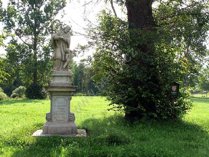 Socha sv. Jana Nepomuckého a památná lípa u mostu