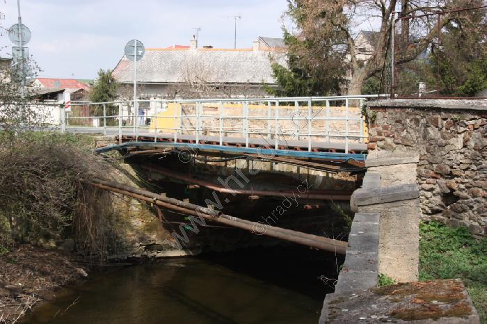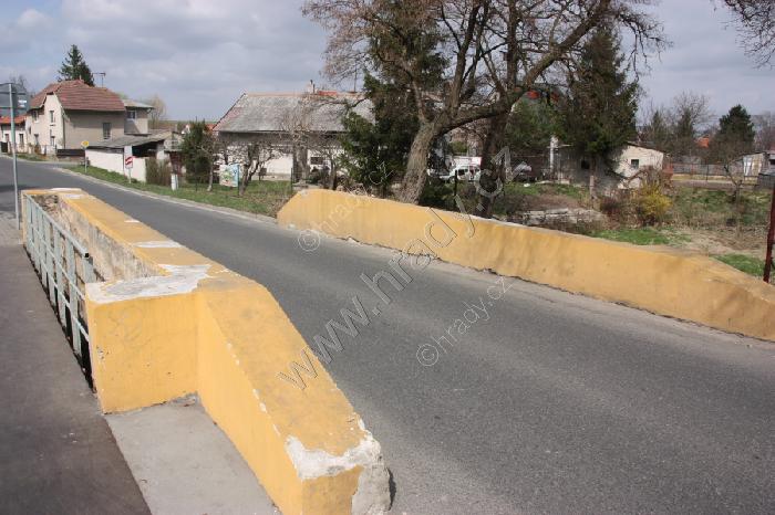 Vozovka mostu, na výstupcích parapetních zídek stály sochy
