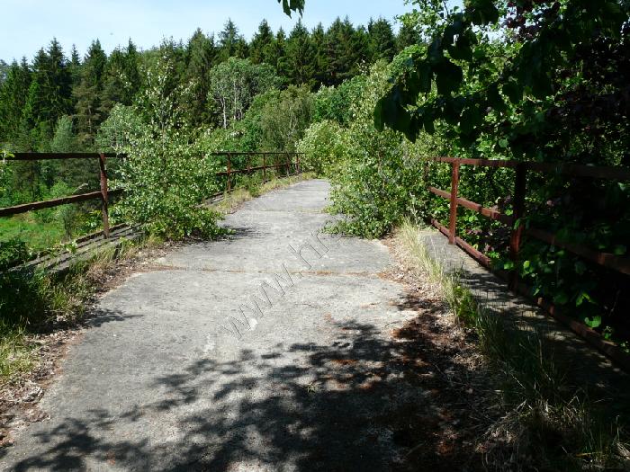 Z bývalé trati je dnes jen pěšina vedoucí na most od východu