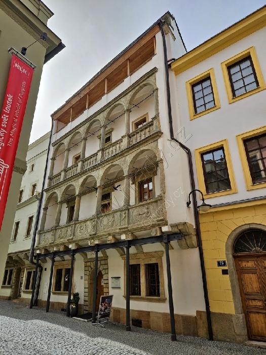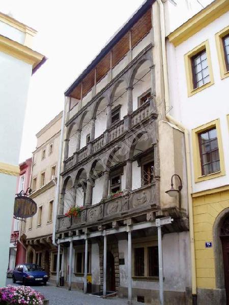 pohled ze Soukenické ulice na frontu domů v Břetislavově ulici