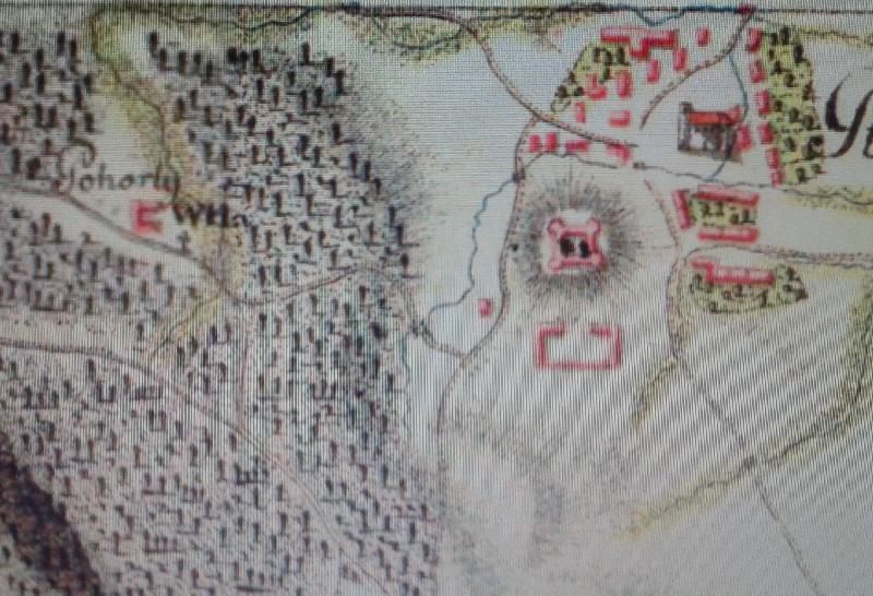 Samota Pohodlí (vlevo) na I.vojenském mapování z l. 1764-68