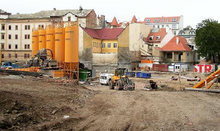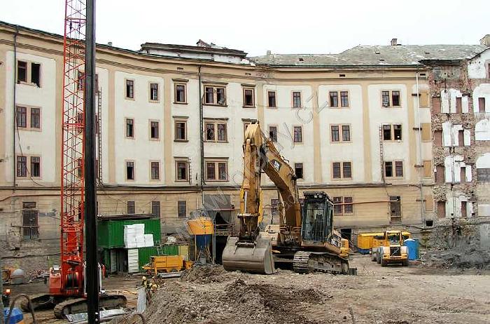 Pohled od východu, v pozadí zadní část budovy kasáren na Náměstí Republiky