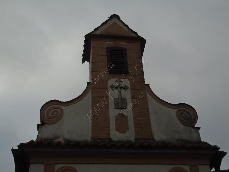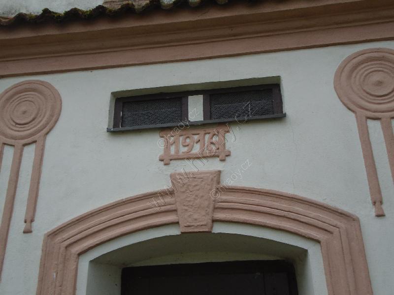 horní část vstupu s datačním rámcem a obdélným okénkem s pilířkem